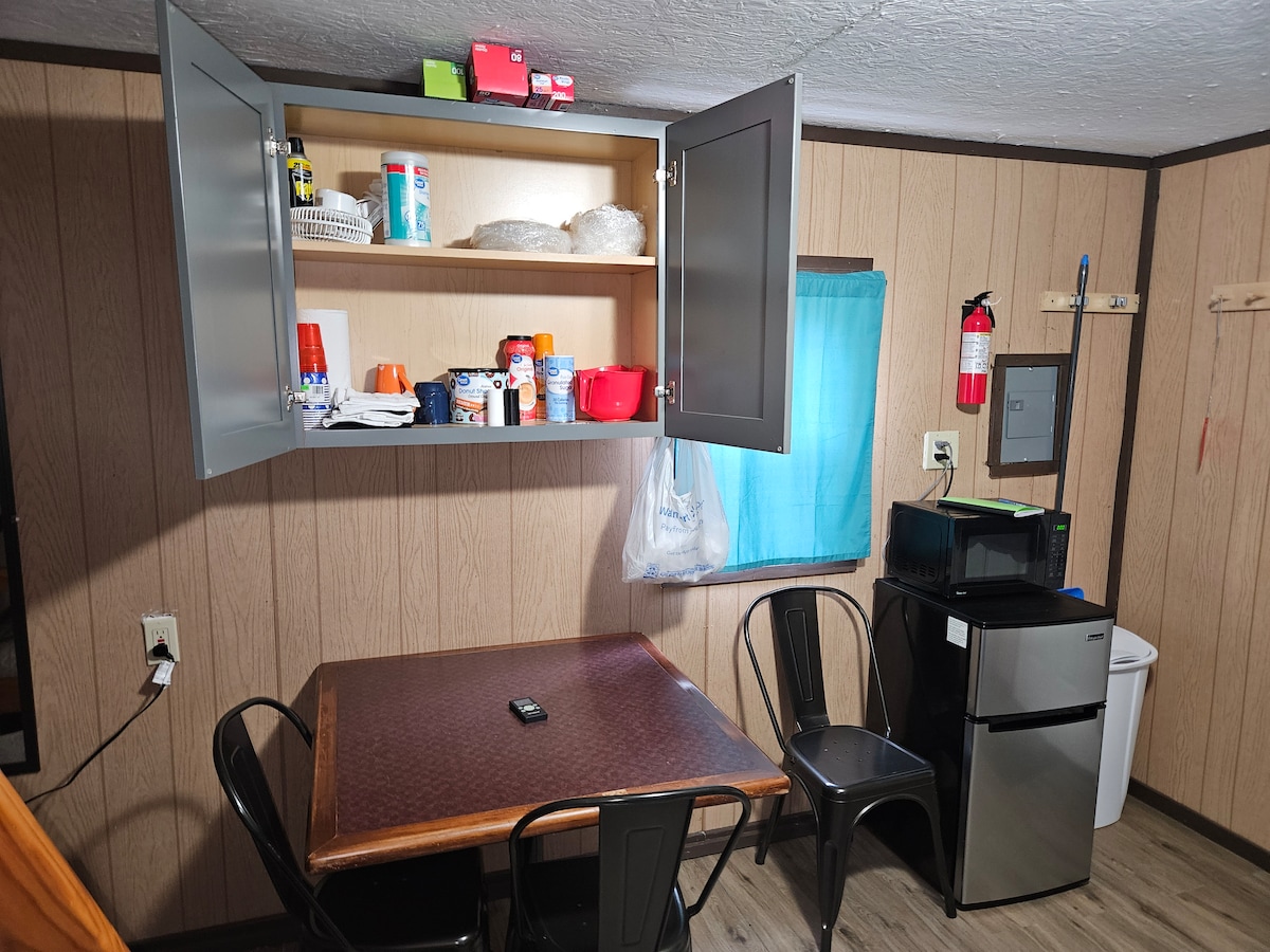 Relax with the whole family at this peaceful place in the north woods. Cabin has 2 twin size beds in the loft and a full size bed on main floor. Includes Kitchen table and chairs and a kitchenette with a microwave, mini fridge, coffee maker, toaster and a crockpot. There is a bathhouse on site with hot showers and bathrooms. Close to ATV/Snowmobile Trails and you can ride from your site. You will need to provide your own bedding, pillows, towels, cooking utensils and shower items