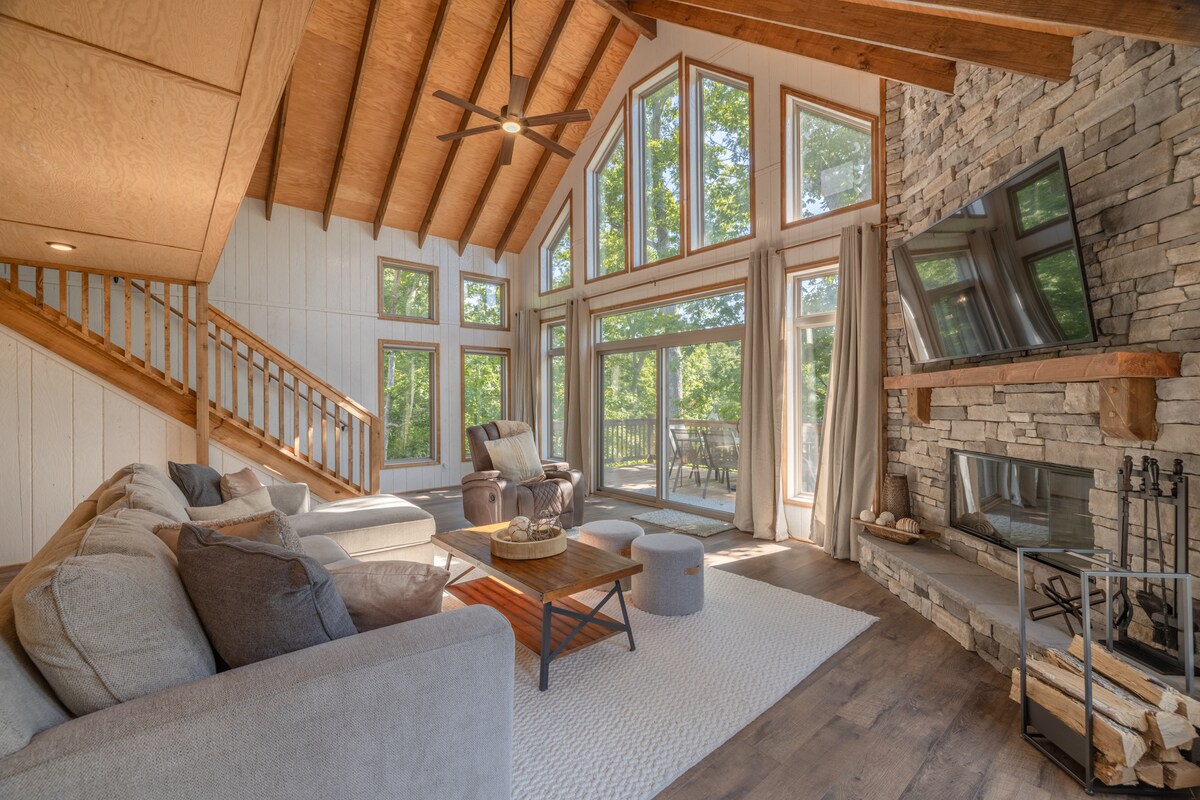 Create unforgettable memories with family and friends in this modern, professionally designed Lodge featuring Indoor and Outdoor community pools, a private hot tub on the lower deck, game room and MORE! Welcome to "Serenity Point Lodge"! - A couple of minutes from Silver Dollar City, the Marina, restaurants & bars – High-Speed Wi-fi – 2 King Beds & 2 Queen Beds - Built-in bunk beds – Game/TV room with a Sleeper Sofa – Roku Streaming TV's throughout – Dedicated work space