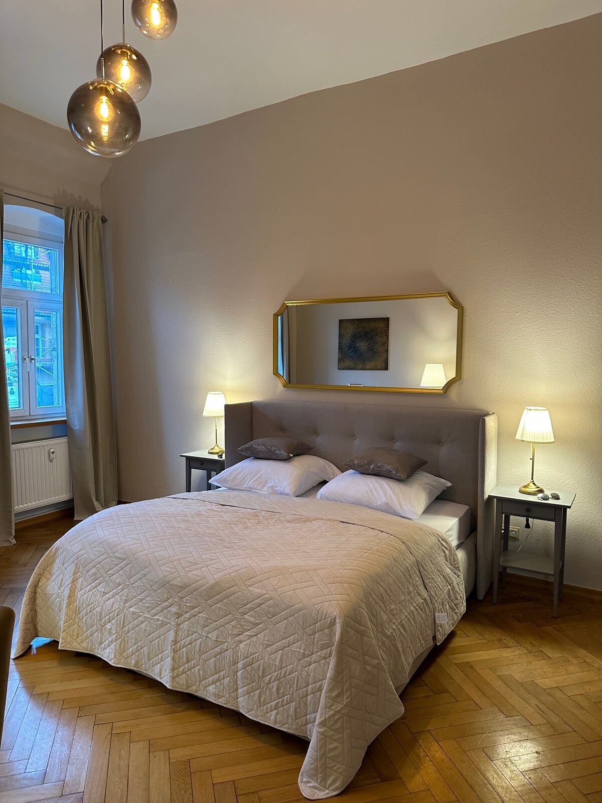 Comfortable, well furnished 3-roomapartment, 66 sqm, large loggia. You will live on the 1st floor alone. Close to the Hermitage/Panorama Trail/thermal baths. The apartment is quietly located in the countryside, centrally located to the city (20 min. walk), 3 min. by car. Good transport links (city bus/highway A9) Living room TV, Wi-Fi Bedroom with a 140 cm bed Work/bedroom: sofa bed 160 cm Bathroom with window Kitchen: fully equipped (no dishwasher) Plenty of parking in front of the house English is also spoken