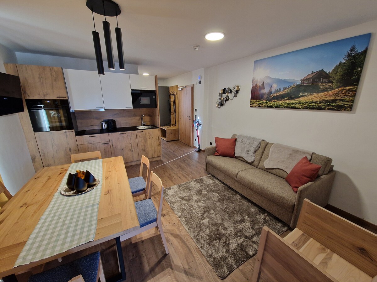 The apartment is located 3 km away from the ski resort of Schladming-Dachstein. It have a living area with a fully equipped kitchen with dishwasher and a sofa bed, a bathroom with infrared cabin, a balcony, free Wi-Fi and cable TV. The ski bus stops 50 m away from the House, the nearest supermarket is 500 metres away. The apartment is an ideal starting point for skiing, hiking, mountain biking and rafting.