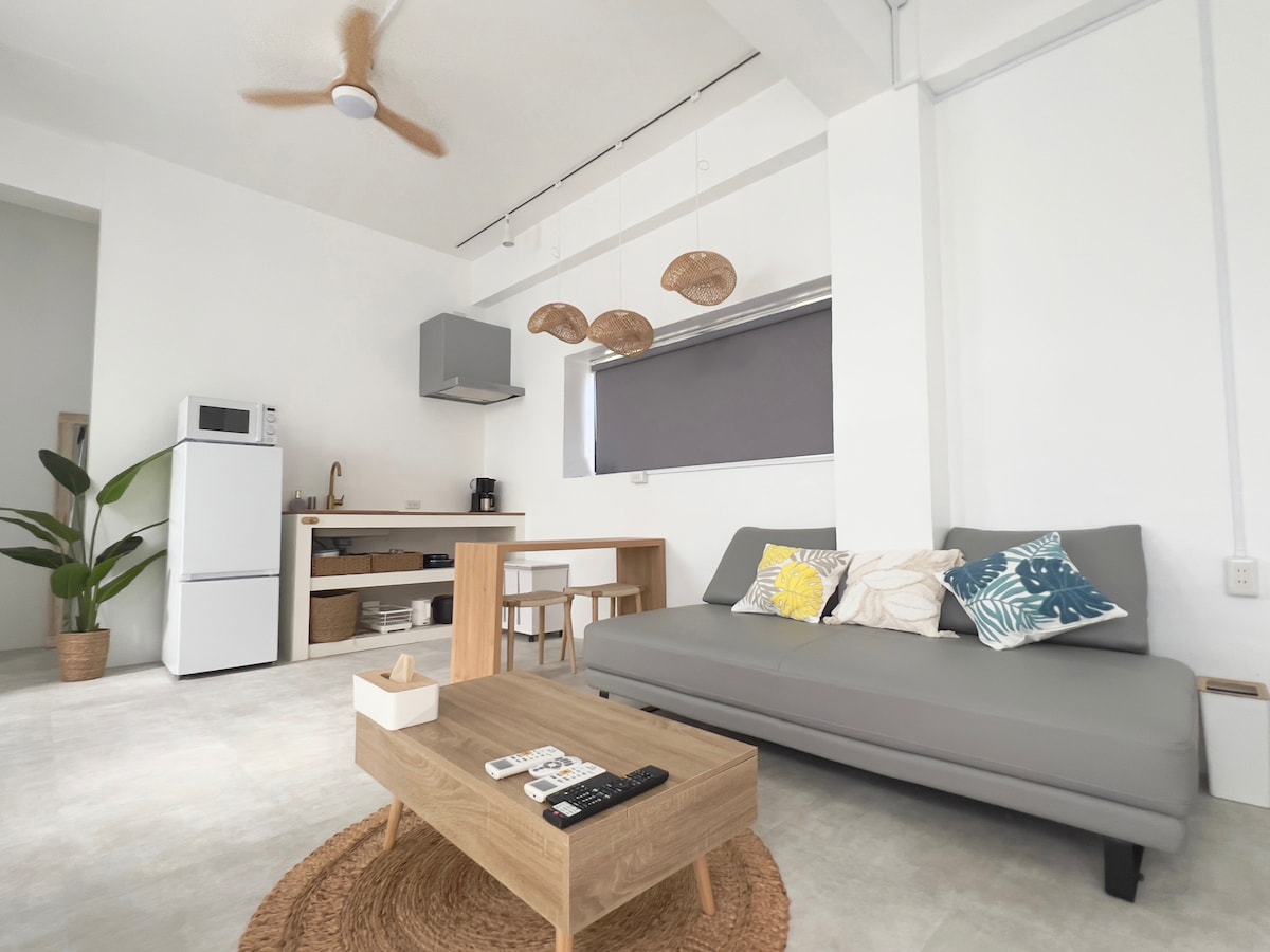 中心部に位置しながらとても落ち着いたエリアです。室内はアンティーク家具等シックな空間に寝具に100% 天然素材を使用したCOCO-MATのマットレスを採用しており旅や海でのアクティビティの後でも十分おくつろぎ頂けます! またキッチン用品も充実している他 洗濯器、乾燥器も設置致しておりますのでショートステイはもちろん長期滞在の方までお楽しみ頂けます! オプションでベランダで楽しんで頂けますバーベキューセットを3980円で貸し出しております!詳しくはお問い合わせ下さい!楽しい旅の時間に是非! ➖設備 アメニティ➖ 〜寝具〜 COCO-MAT キングサイズ クイーンサイズソファベッド シングルサイズソファベッド その他 〜台所〜 コンロ(2口)ハンドソープ 油 塩 胡椒 酢 洗剤 電子レンジ トースター ケトル 大型冷蔵庫 食器類 調理器具類 各種コーヒー器具 〜洗面所〜 バスタオル フェイスタオル シャンプー コンディショナー ボディーソープ ドライヤー トイレットペーパー 歯ブラシ 櫛 コットンセット カミソリ 使い捨てスリッパ ボディータオル スピーカー