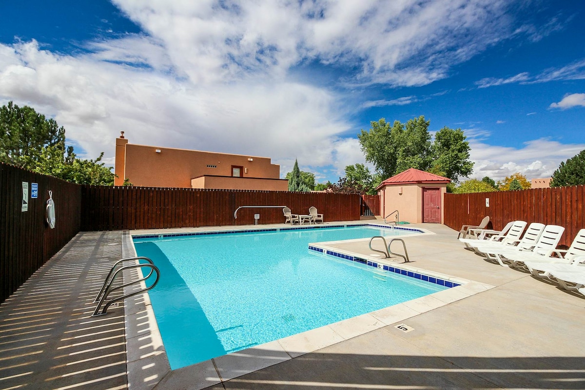 This comfortable, well-maintained, beautifully decorated 3BR/2BA townhouse alongside the Moab Golf Course, is a home away from home in the perfect location just 4 miles south of town on the EAST side of the valley, ten minutes from Center and Main St. We have a splendid patio with morning sun and afternoon shade. Castillo is an 18 unit project that was very well laid out with lawn, trees, one of the nicer pools with fewer people to share it, and close to the nature you come here to see.