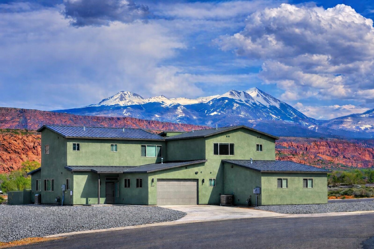 New 1550 Sq. Ft. Vacation Home with 270° Picturesque Cliff Views. Master Suite/Bath, King, King, & Queen/Double bunk, Wireless Internet, Group Equipped Kitchen, Gas Grill, Patio, Attached 2 Truck Garage, Wide Streets w/ Unlimited Parking, 30 Seconds to Pool & Hot Tub, 12 Min. Drive to Arches, 35 Min. Drive to Canyonlands, and 7 Min. Drive to Downtown Moab. Stay here in an extremely safe and accessible neighborhood with room to park trailers etc. Most convenient parking in the subdivision.
