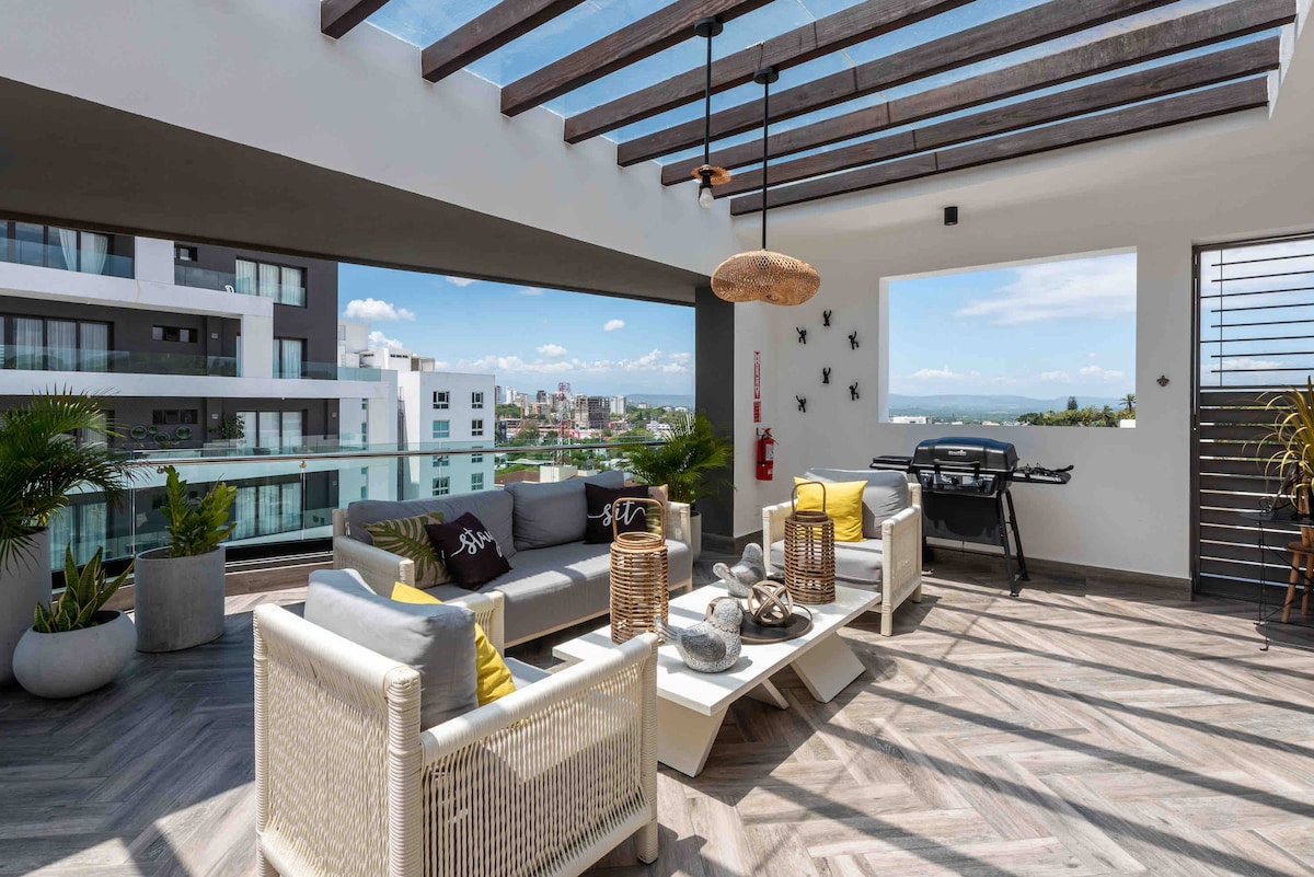 Experience style and comfort in this elegant central apartment. ✨ Enjoy a thoughtfully decorated and fully furnished space, designed to make your stay as comfortable as possible. Located in Los Cerros de Gurabo, one of Santiago’s most exclusive, quiet, and safe neighborhoods, you’ll have everything you need for a pleasant stay. It will be a true pleasure to host you. Make yourself at home and enjoy it to the fullest! 🏡
