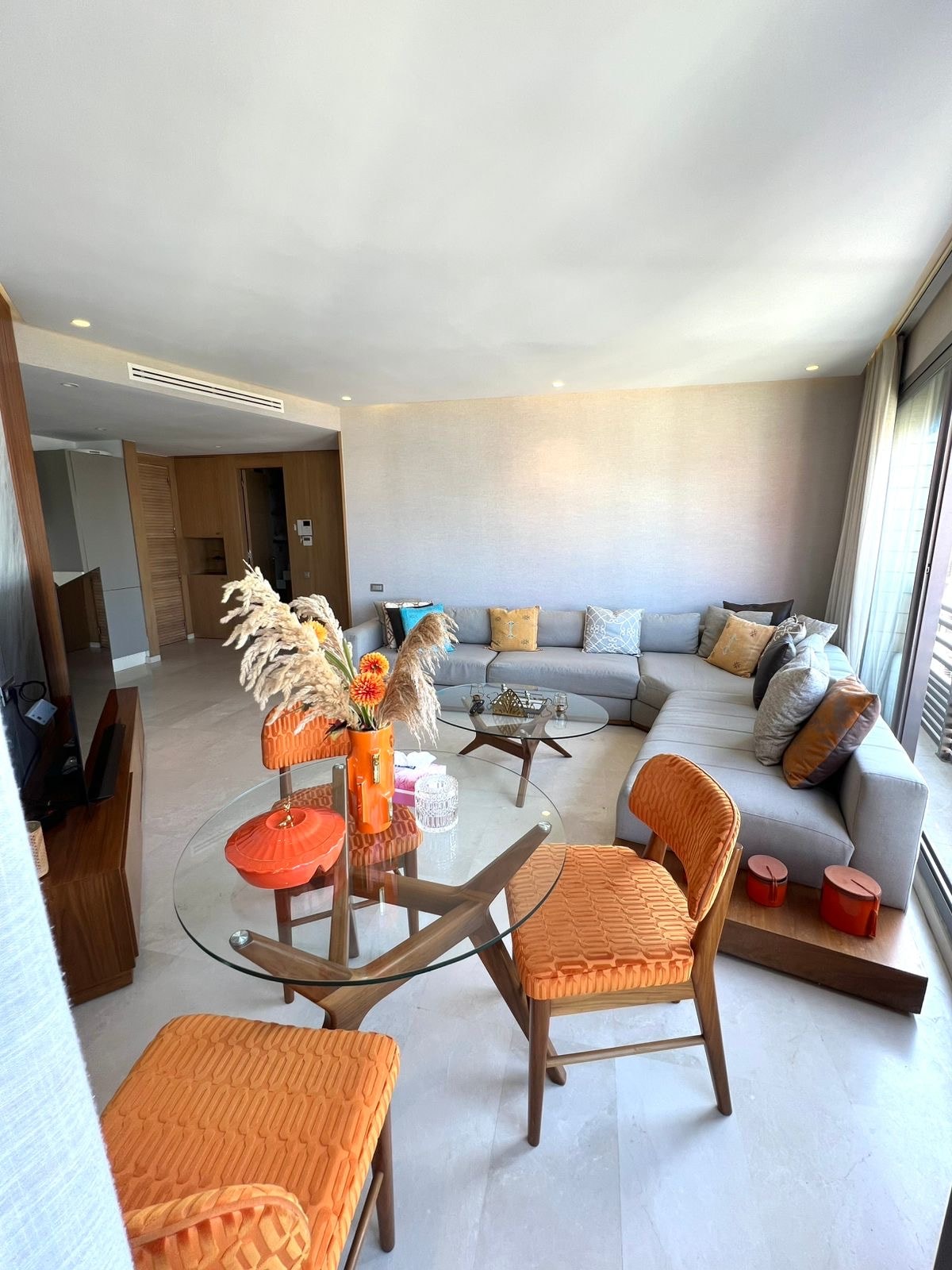Welcome to this beautiful apartment perfectly located in the heart of Casablanca - Les Princesses. Enjoy a refined featuring a bright balcony, elegant décor, and modern amenities, ideal for a comfortable and relaxing stay. Take advantage of a fully equipped kitchen and a secure parking space, offering both convenience and peace of mind throughout your visit. A calm and contemporary retreat where every detail has been carefully considered to make your stay truly unforgettable.