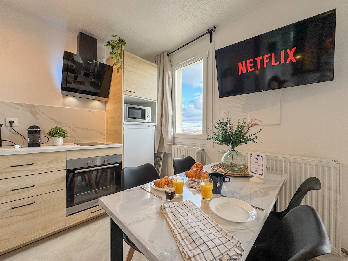 🏡 There you will find: • A soothing bedroom for a restful sleep • Modern bathroom with shower and hairdryer • A fully equipped kitchen (microwave, toaster, dishes, etc.) • A relaxation area with TV for your cozy evenings Every detail has been thought of to create an intimate and friendly atmosphere, perfect for a timeless break. 📍 Located in a pleasant and convenient area, you will have everything at your fingertips.