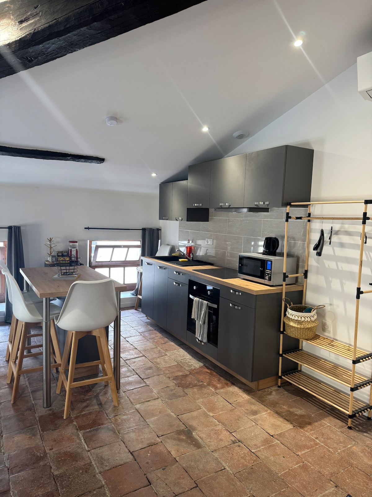 Beautifully decorated and equipped Duplex Cocoon, with independent entrance Mezzanine bedroom with double bed (new bedding)/closet/desk/wardrobe/small storage cabinet Living room with TV/Wi-Fi Fully equipped kitchenette: induction cooktop, range hood/electric oven/microwave/crockery/Nespresso + pods provided Bathroom with hairdryer/shower gel Secure motorcycle garage Accommodation located in the heart of the village, close to shops (grocery store, butcher, restaurant) Close to Montauban