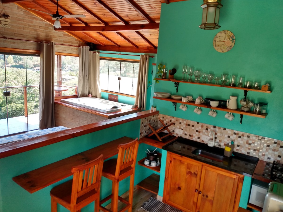 Chalé nas montanhas, tranquilidade e privacidade com todas as comodidades que você precisa para apreciar a natureza. Cozinha equipada, tv , internet 4G , hidromassagem, ar condicionado e mesa para refeições. Cama king size, com roupas de cama e banho com cheirinho de aconchego. Uma imersão na natureza. Silêncio e paz com vista cinematográfica de todos os ambientes. Sentar-se ao ar livre admirando a pintura e os sons da natureza é uma das melhores experiências que terão.