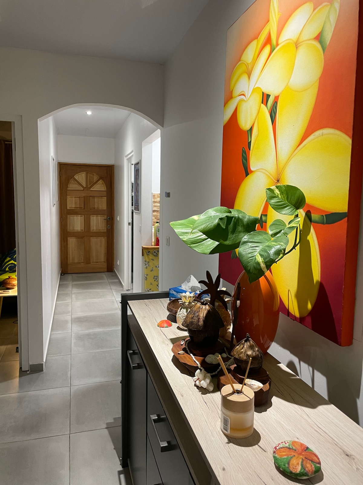 At the edge of the Moorea lagoon, this family home is a haven of peace, perfect for an unforgettable vacation. With its tropical garden, direct access to the sea , everything is thought out to offer you a unique stay. The house is 5 minutes from the ferries docks, amenities , golf and the famous Temae beach, known for its crystal clear waters and white sand. You can explore the lagoon, relax in the garden, or go on an adventure .