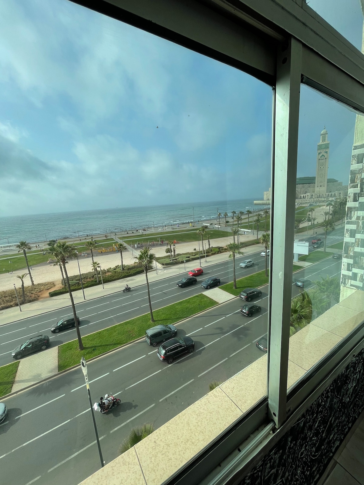 Enjoy Atlantic ocean views at this lovely centrally-located place. 5 minute short walk to Hassan 2 Mosque. Elegant restaurants and coffee shops all over. Beautiful night and day views as well as malls for any kind of shoppings and easy transportations.