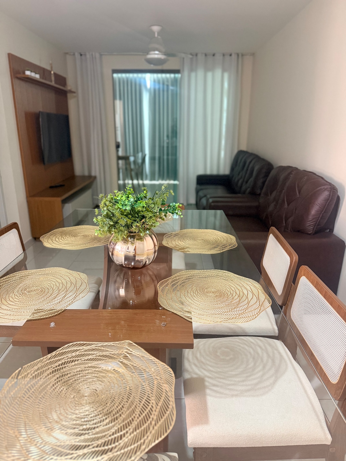 Two-bedroom apartment (1 en-suite) facing the beautiful Peracanga Beach, with modern and cozy decor. Super well located building, balcony with ocean view in open concept with dining and living room, close to everything you need. Three paradisiacal beaches (Guaibura, Peracanga and Bacutia) are so close that you won't even need to remove the car from the garage: a privileged location! The rooms are fully equipped for your comfort, with Wi-Fi in all rooms.