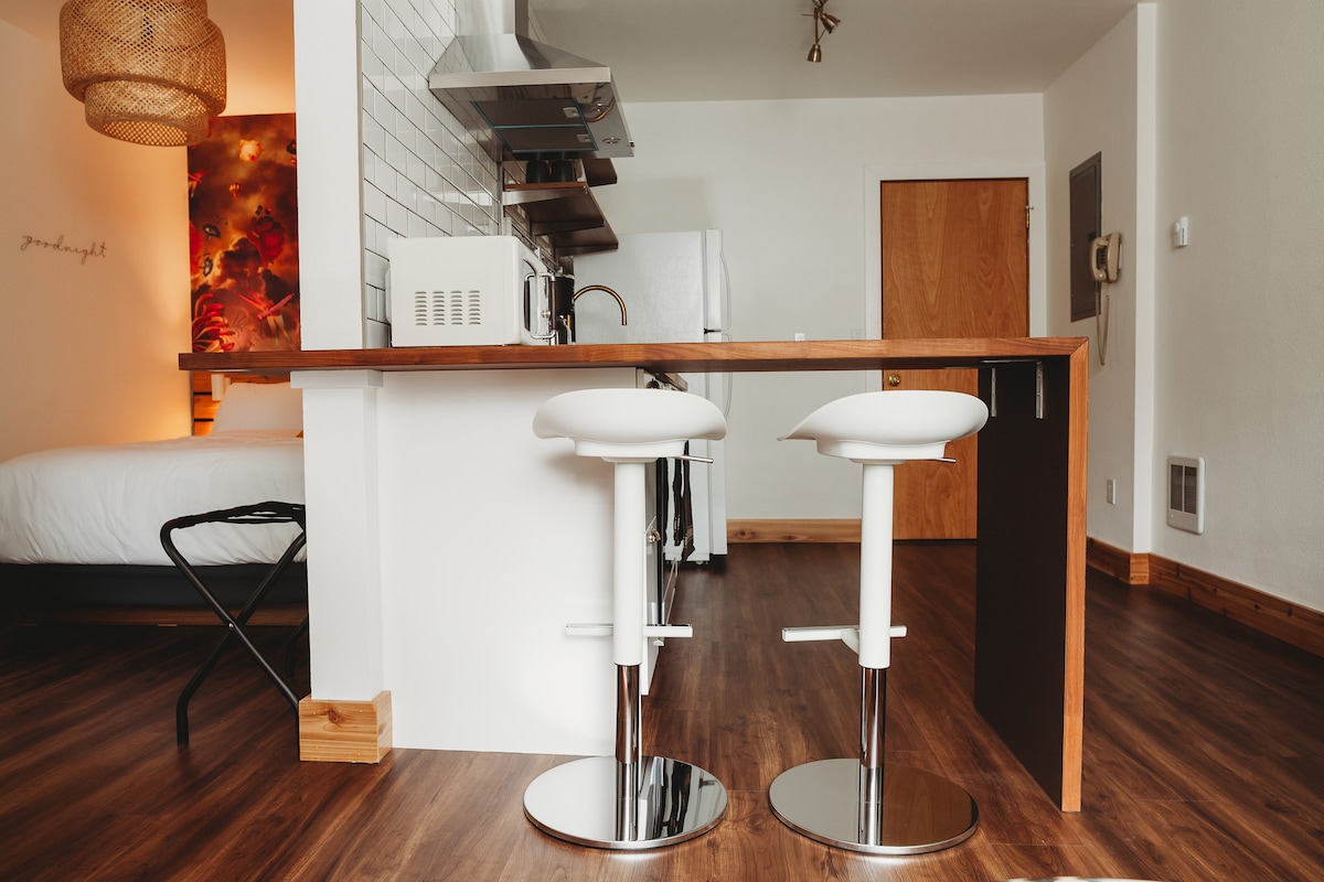 Enjoy a stylish experience at this fully renovated centrally-located apartment in the Moscow Hotel. You will be staying in the heart of downtown Moscow! •Lots of natural light, exposed brick, wood floors and high end finishes. •Steps from the best restaurants, wine bars, coffee shops, and events. • Full kitchen, stocked with Organic coffee and teas. •Equipped with a Smart TV and stylish furnishings. • Large bathroom with Organic shampoo, conditioner and body wash. • Secure self check-in/ out