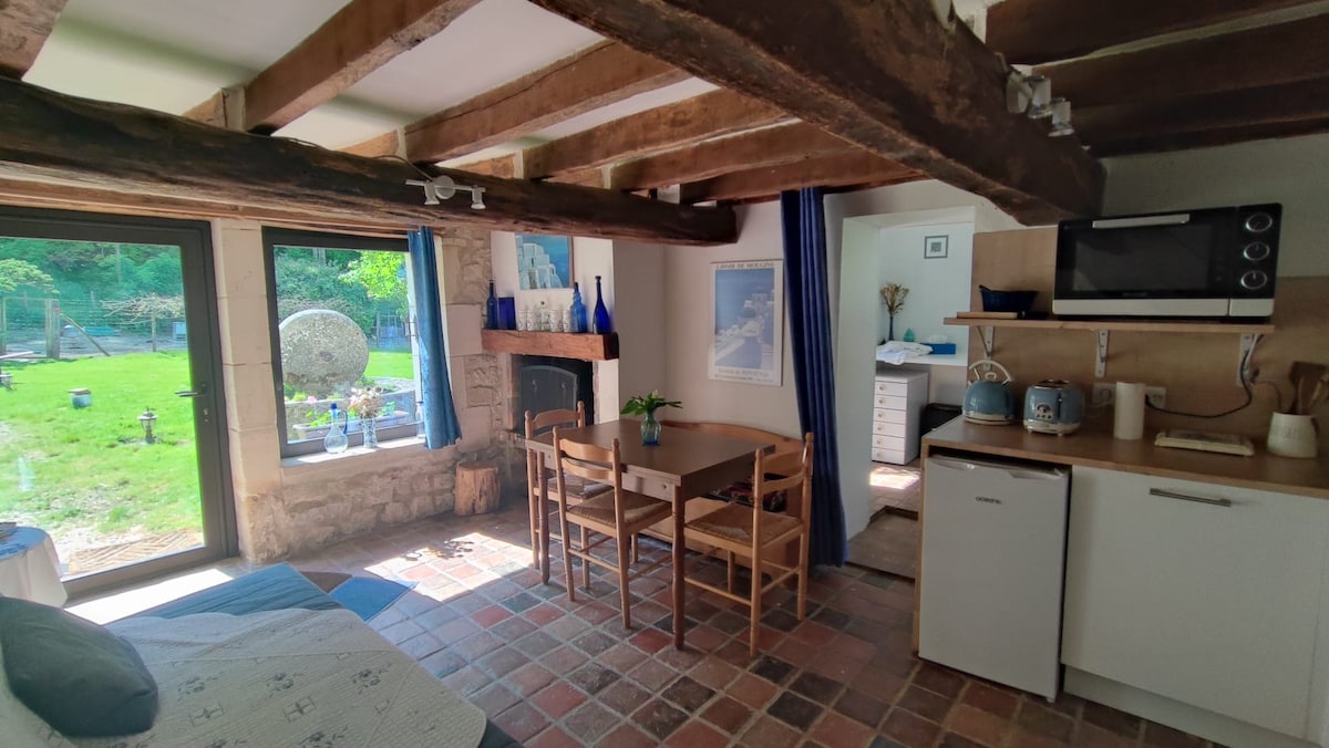 15 km from Saint-Sauveur-en-Puisaye (Maison Colette), 25 km from Guédelon and Saint-Fargeau, 20 km from the vineyards (Coulanges, Irancy, Chablis), you will stay in a small, fully-equipped outbuilding, facing our house, in a small hamlet. We practice permaculture and raise animals (chickens, sheep, turkeys, ducks) that we will introduce you to if you're interested. Cleaning must be done upon checkout. For those who do not wish to do so, we offer a cleaning option.