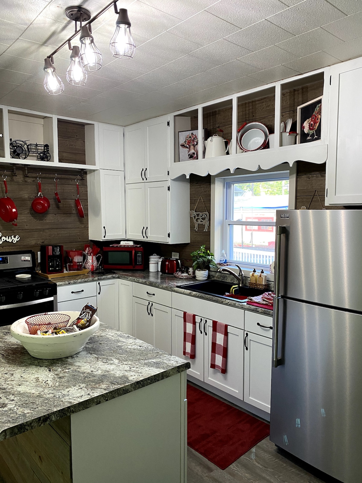 This beautifully renovated house has modern conveniences and historic charm. Located on a quiet side street in central Kirksville, it is within walking distance of a grocery store, drugstore, playground, and Truman University. Two bedrooms each have their own private bathroom. Modern kitchen has island seating, and is fully equipped for cooking and entertaining. WIFI, Roku, and washer/dryer available. Smart locks and safe off-street parking plus toys, books, and games for the whole family.