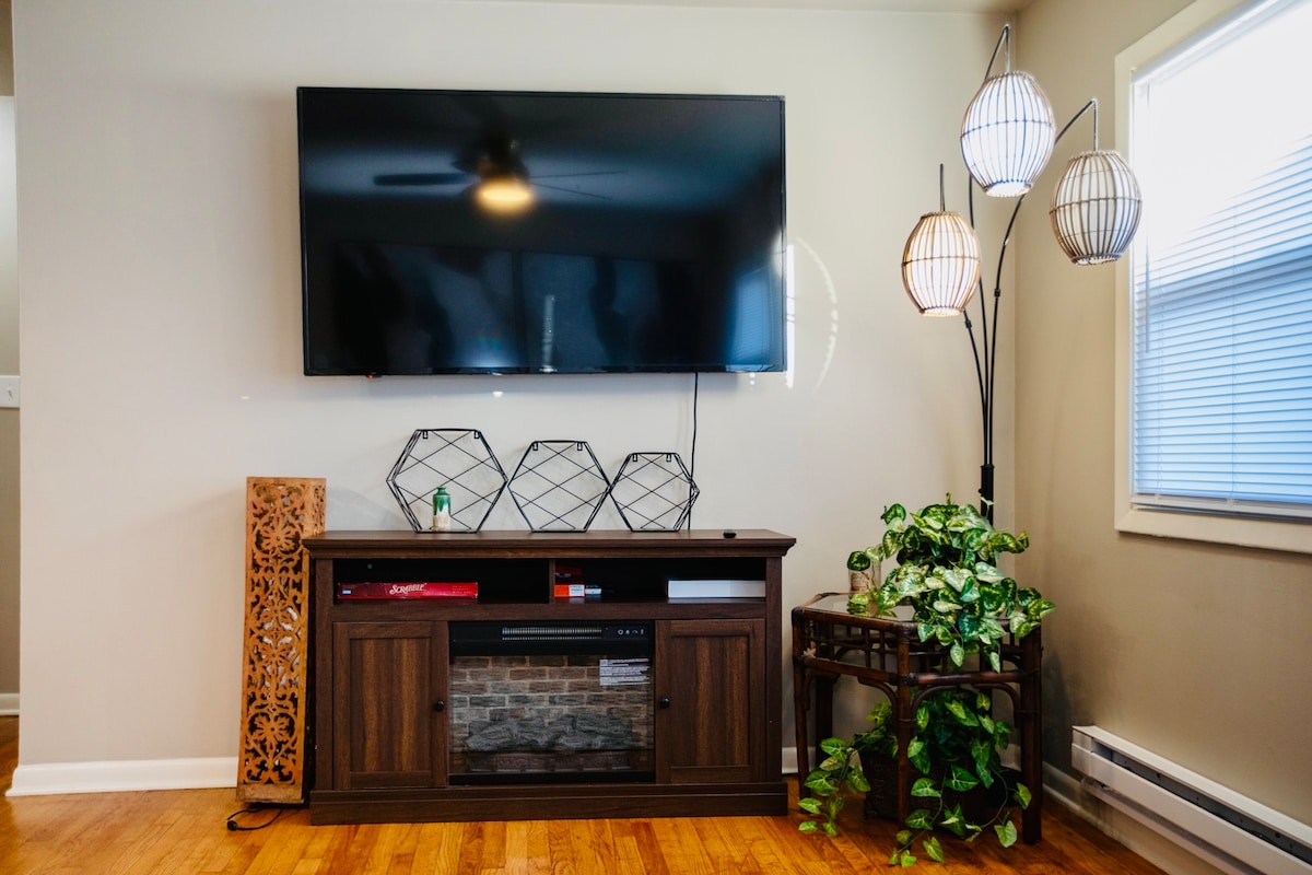 Welcome to your home away from home in the heart of one of Chicago's safest and quietest neighborhoods! This beautifully updated 1 bedroom apartment offers everything you need for a comfortable and convenient stay. It is perfect for couples, solo travelers, and business visitors. Book now for a truly unforgettable experience in the Windy City! - 1 free parking spot - 400 MB Wifi - 2 smart T.V. with access to Netflix, Hulu, Amazon and more! - Desk - Easy app paid laundry in the building.