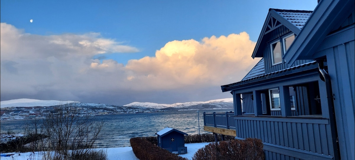 Arktisk opplevelse med Tromsø’s vakreste view 🌅 Kun 10 min til sentrum med buss, avgang hvert 15. min Moderne og stille leilighet bygget på påler over havet, med panoramautsikt mot by, fjell og nordlys. Med litt flaks kan du se hval fra balkongen 🐳 Perfekt for en ekte arktisk opplevelse enten du kommer for nordlyset, midnattssolen eller bare roen Gym og matbutikker rett i nærheten og kort vei til strand og skibakker. Nyt gulvvarme, gratis wifi og balkong over havet Innendørs parkering via app