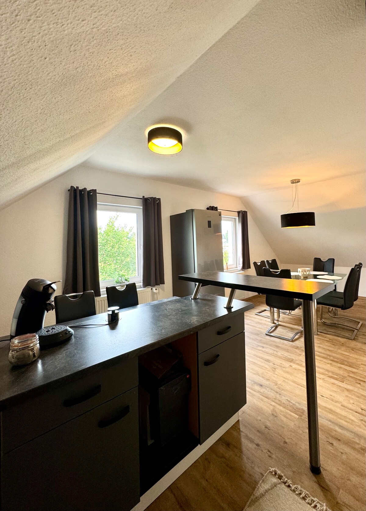 Ich biete hier eine toll eingerichtete 5 Raumwohnung mit insgesamt drei Schlafzimmern, wo eine ganze Familie oder Gemeinschaft Platz findet. Ein separates WC und ein geräumiges Bad sind vorhanden. Neben der toll eingerichteten Küche und dem sehr geräumigen und gemütlichen Wohnzimmer findet Ihr gemütliche Schlafzimmer. Die Wohnung befindet sich im 3. Stock im Dachgeschoss. Direkt in der Innenstadt von Mühlhausen/ Thüringen. Ideal für Ausflüge oder einfach nur einer ordentlichen Übernachtung!