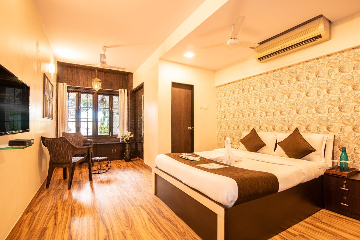 Escape to Verandah Aanchal, a spacious 2BHK bungalow designed for up to 6 guests max, blending comfort, style, and relaxation. Enjoy your private plunge pool and unwind in the patio or garden area and savor meals in the dedicated dining and kitchen spaces. Whether you’re lounging on the front lawn, exploring the shared garden, or taking a quick drive to the beach just 10 minutes away, this bungalow offers a perfect blend of privacy, convenience, and outdoor living.