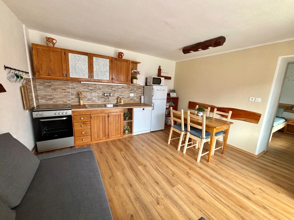 Apartment Burk is located in the mountain village of Dreznica, at the foot of the Julian Alps. The property can accommodate up to 5 people and includes two comfortable bedrooms and all modern amenities, such as air conditioning, for optimal guest comfort. The location is an excellent starting point for an active holiday in one of the most beautiful natural areas in Europe - Triglav National Park. From the balcony of the apartment you can enjoy breathtaking views of the beautiful nature.
