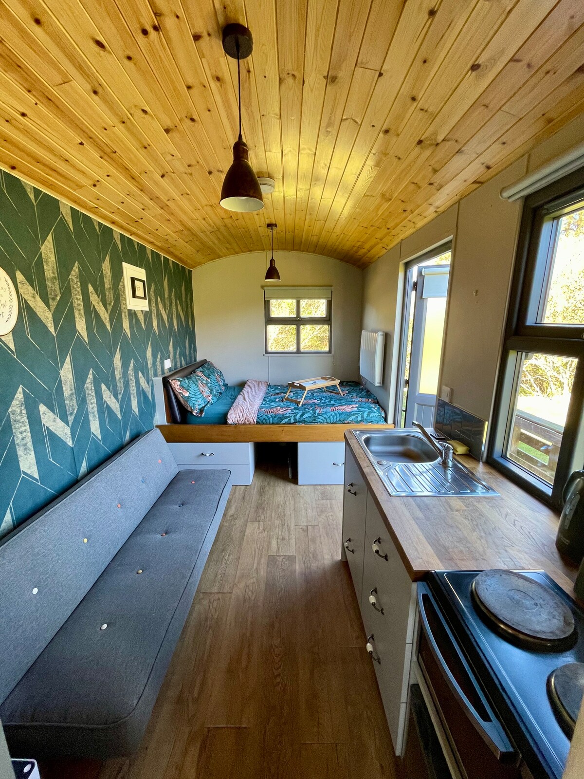 Reconnect with nature at this unforgettable escape. Comprising one double bed and a pull-out double daybed, comfort, cosiness, rest and relaxation is guaranteed. Equipped with mini-fridge, tea/coffee making facilities, outdoor seating area, fantastic views. Please note that full bathroom and kitchen facilities are shared with Kate's Place on site. Located just 2 hrs from Dublin airport, 50 mins from Shannon airport with motorway access to Gort which is 15 mins drive away.