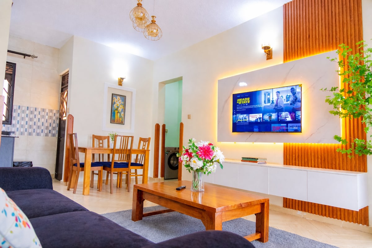 Luxurious, spacious, fully furnished 2-Bedroom apartment in Kisasi Kikaya, Kampala all to yourself!Cleanliness is top priority, all beddings and towels are white and the apartment is cleaned 6 days a week at no extra cost!Located Just steps from the Bahai Temple, and 5KM drive from Acacia Mall. 3 balconies to enjoy the views. Kitchen fully fitted with mordern appliances. Smart 55 inch TV! Lush green gardens outside and a pergola perfect for making memories. The flowers were chosen with love!