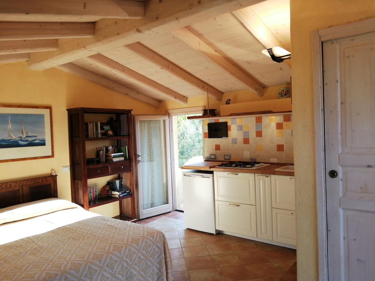 the studio, located on the highest point of the stazzo, has an enchanting view of the lagoon, the sea and the surrounding green. Nature, with its colors, scents , noises, will hug you completely. You can watch the sunrise, sunset, moon, stars and even the Milky Way. A few minutes drive you can reach the beautiful Feraxi beach and the charming Porto S'Ilixi and Cala Sa Figu coves. In the nearby village of San Priamo, a great restaurant and convenience store.