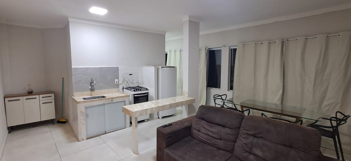 Cozy furnished apartment with air conditioning, ideal for those seeking comfort and practicality in Muriaé, located just 7 minutes from the bus station and Boulevard Mall, easy access to restaurants, pharmacies and supermarkets, perfect for both leisure and business travelers. ✅ Amenities •Air conditioning •High-speed Wi-Fi •Smart TV • Equipped kitchen (stove, refrigerator and basic utensils) •Bed and bath linens included •Garage (1 parking space) • Quiet and safe environment