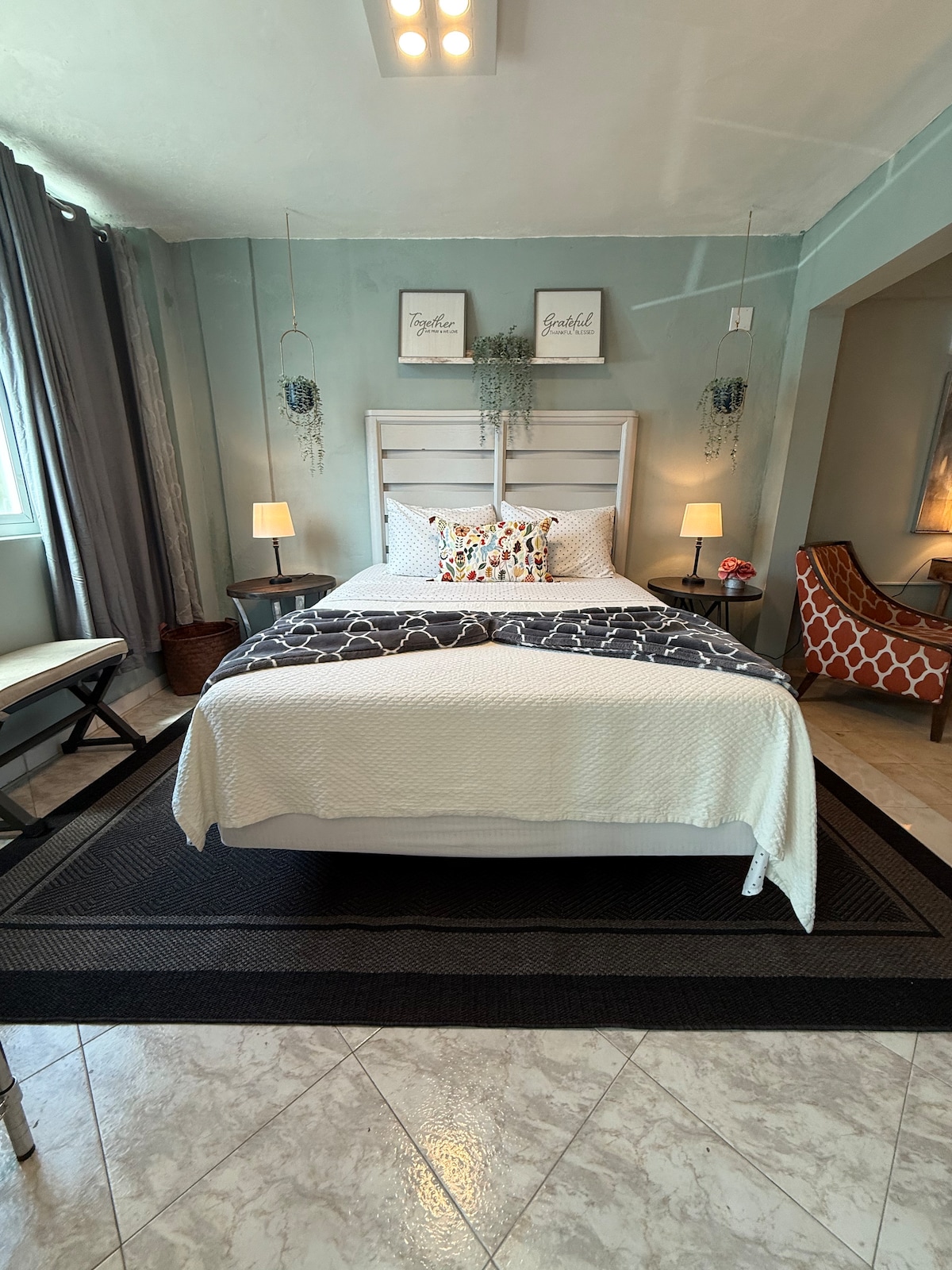 Located in a quiet street with only local traffic, you will be few steps to the local supermarket open 24/7, pharmacy, restaurants, coffee places in Calle Loíza and barely three blocks to Parque Del Indio beach. You’ll be able to enjoy a peaceful stay! Note: some nights the coquis (our national frog 🐸) are loud, some people are not used to it, but once you do is like a singing concert of nature.