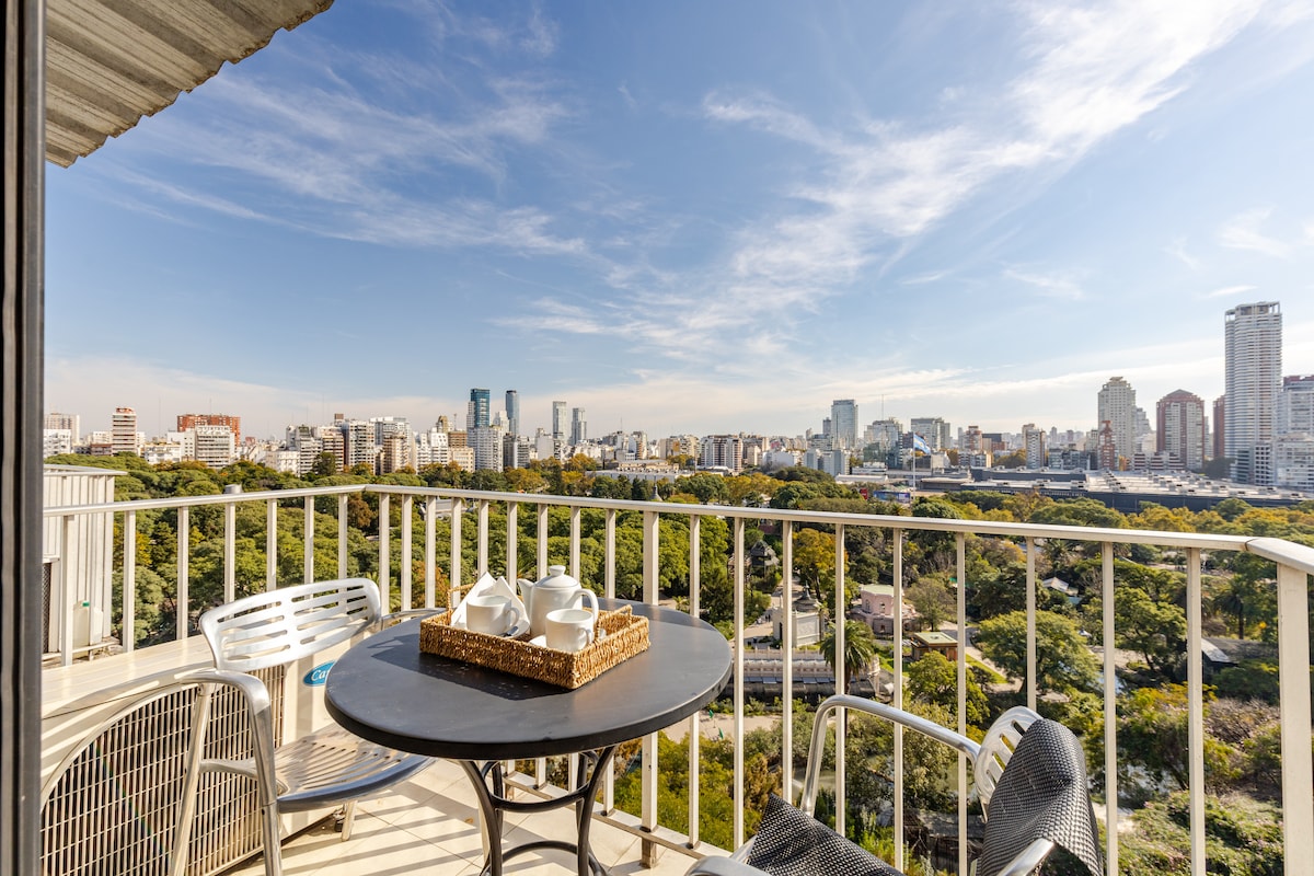 Apartment overlooking the Botanical Garden, located in a privileged area of Palermo on Avenida Las Heras, close to everything. Its contemporary style setting and complete equipment are designed for you to relax and enjoy your stay, whether you visit us for work or vacation It includes, among other things, air conditioning and a Smart TV in the living room and bedroom, appliances and kitchen utensils, a washing machine, and 200M fiber internet.