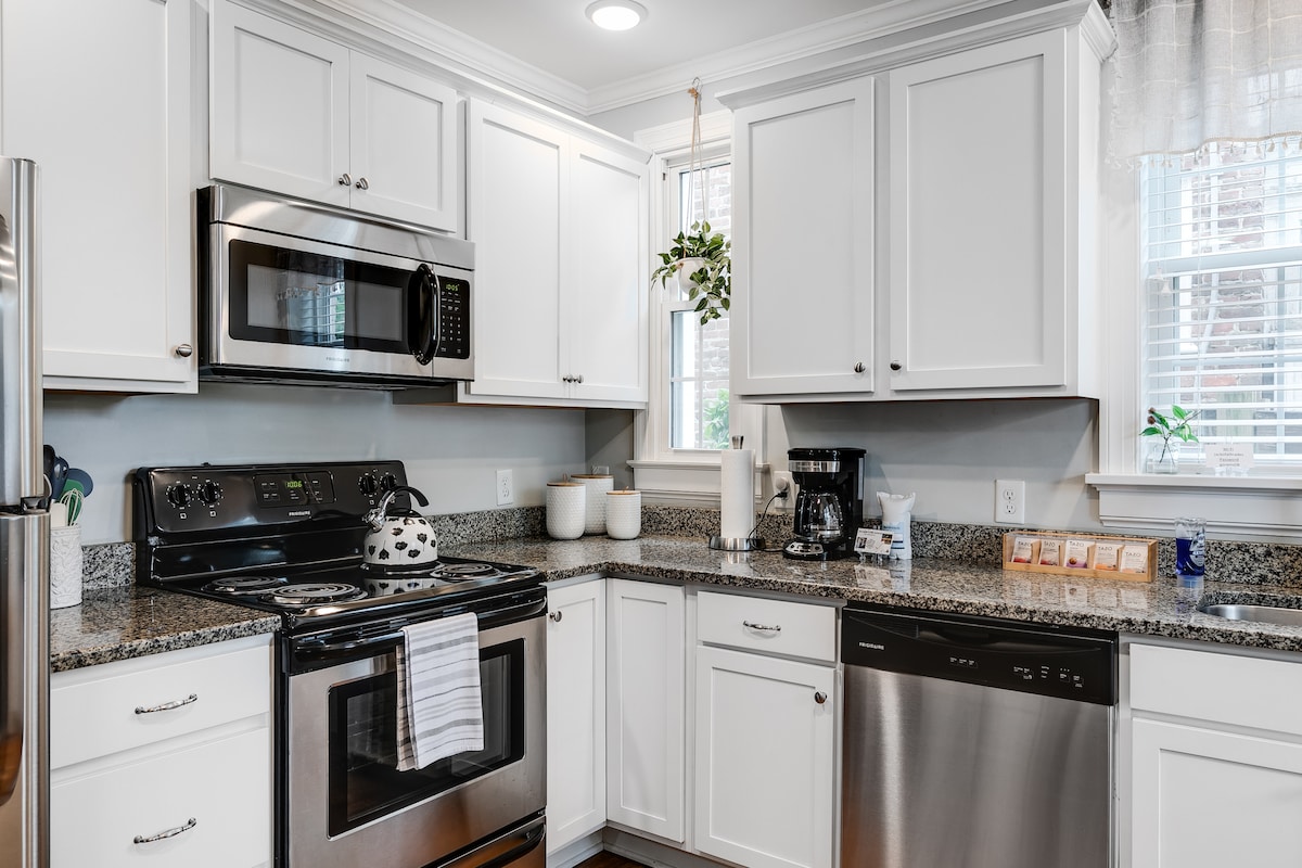 This lovely renovated cottages all of the essentials and includes a fully stocked kitchen with complimentary coffee. Two bedrooms each with cozy queen beds are perfect for your couples getaway or a romantic weekend. A small but stylish Jack and Jill bathroom connects the 2 rooms. Enjoy the mornings on the front porch or evenings on the screened porch after walking to dinner on Cary Street! Shopping, brunch, cocktails..it's all right here. One off street parking spot available offsite.
