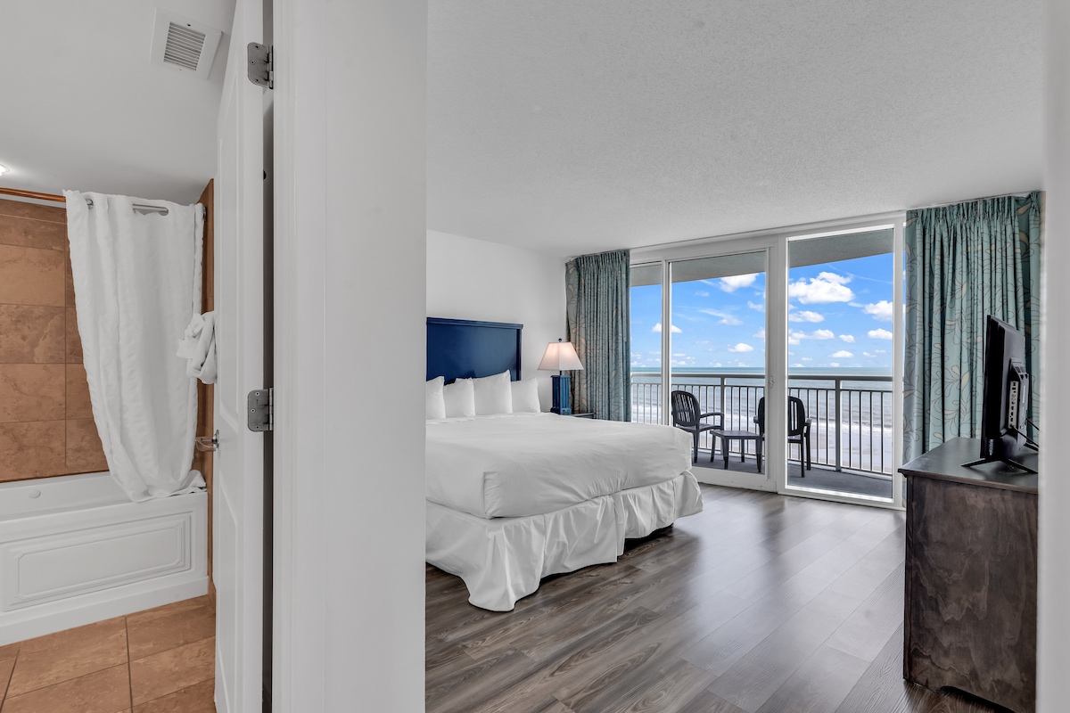 Wake up to sweeping ocean views and effortless coastal living at our updated oceanfront condo at the Carolinian Beach Resort. Designed for couples, families, or friends traveling together (sleeps up to 10 guests), the condo features floor-to-ceiling windows, two private balconies, and ensuite bathrooms for both bedrooms. You will enjoy direct beach access, premium guest amenities, and resort-style amenities including pools, a lazy river, hot tub, and fitness center.
