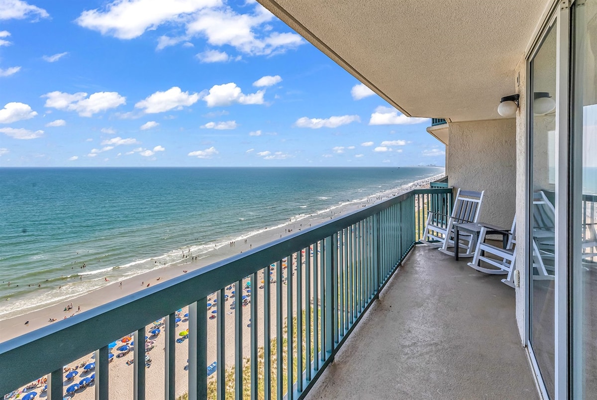 Beautiful King 1BR/1 bath DIRECT oceanfront condo. Lounge on your private balcony and watch the sunrise while sipping your morning coffee! 😊 Fireworks from the balcony every Wednesday evening during peak season! If you want a fabulous experience with your stay in Myrtle Beach, then please read my reviews and feel confident that you made the right choice. This is a direct oceanfront view, not a partial view! Minimum rental age-25. This 3rd floor oceanfront condo has all the comforts of home!