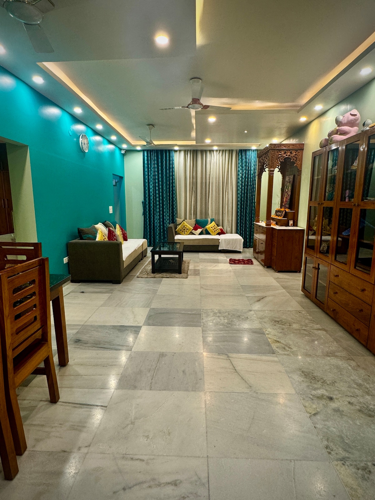 We have a 3 BHK flat and are willing to provide 2 big size bedroom (1 Ac and 1 Non-Ac) for stay. It's just 7-8 mins walk from ISKCON temple and there is an open ground that you can see from the bedroom and enjoy the views. You will get complete privacy. Food: We have the kitchen and we can provide you with hot and home cooked food if you want it but that will be extra. (We can only provide vegetarian food) Note: Lift is is not working right now. It's getting repaired.