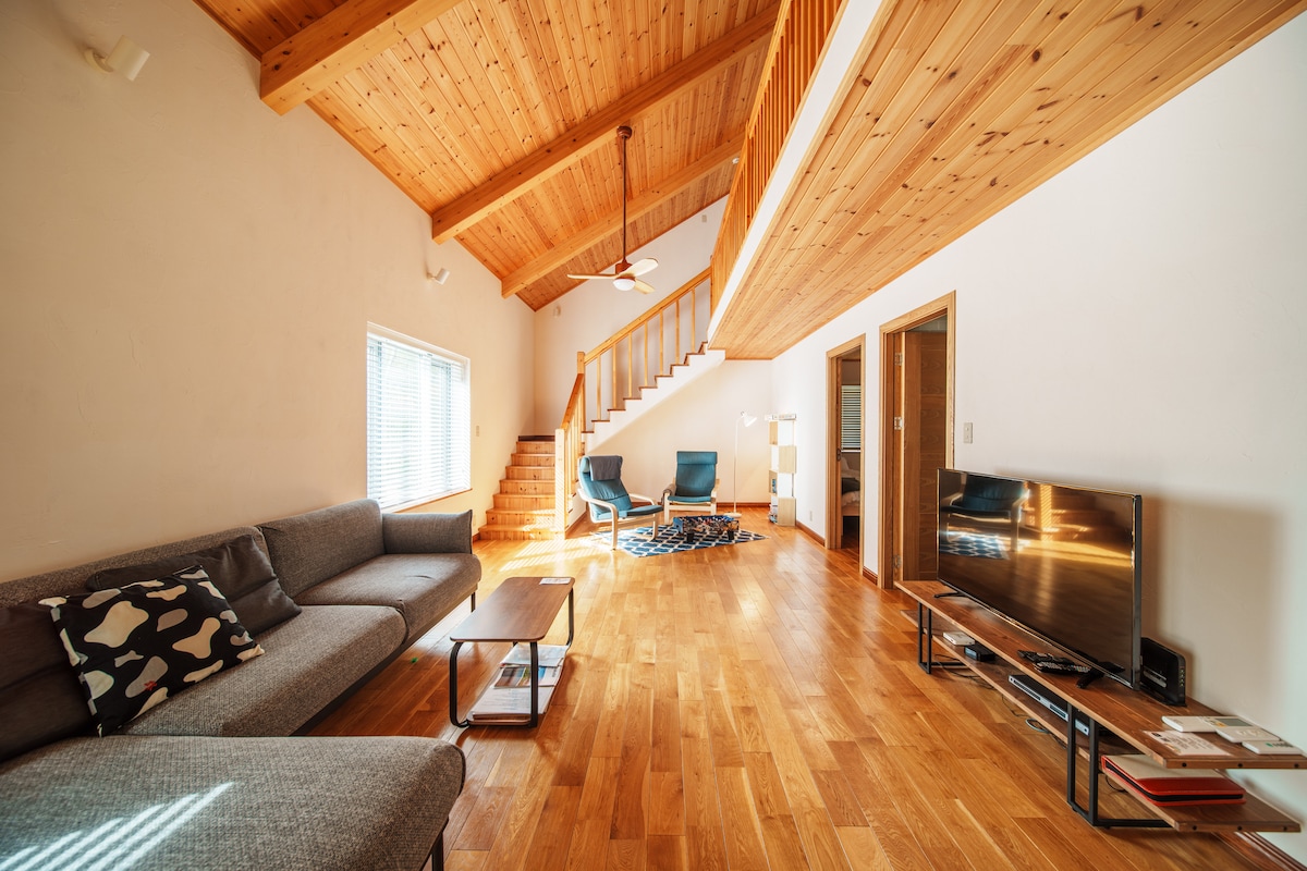 Renovated to be open, modern and spacious our chalet is only 20 minutes drive from Nagano City, Togakushi and Iizuna ski resorts. It is less than 5 minutes walk to many cafes and restaurants and the new Nagano Forest Village. There, you can buy local produce, craft beers & wine, and walk around the beautiful area. We recommend driving to explore more around the highlands and snow tires (or chains) are a must have during winter.