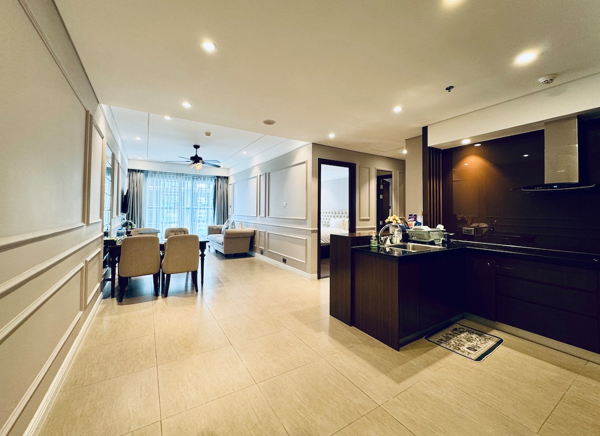 Elevate your seaside getaway in this rare corner suite at Fusion Suites — a high-floor retreat with breathtaking ocean views from two sides. Just steps from My Khe Beach, it blends curated interiors, a fully equipped kitchen, and refined 4-star comforts. – Prime corner position offering sweeping sea panoramas – Only 1 minute to My Khe Beach – Elegant open-plan layout with premium finishes and abundant natural light POOL USE UPON REQUEST – PLEASE MESSAGE US.