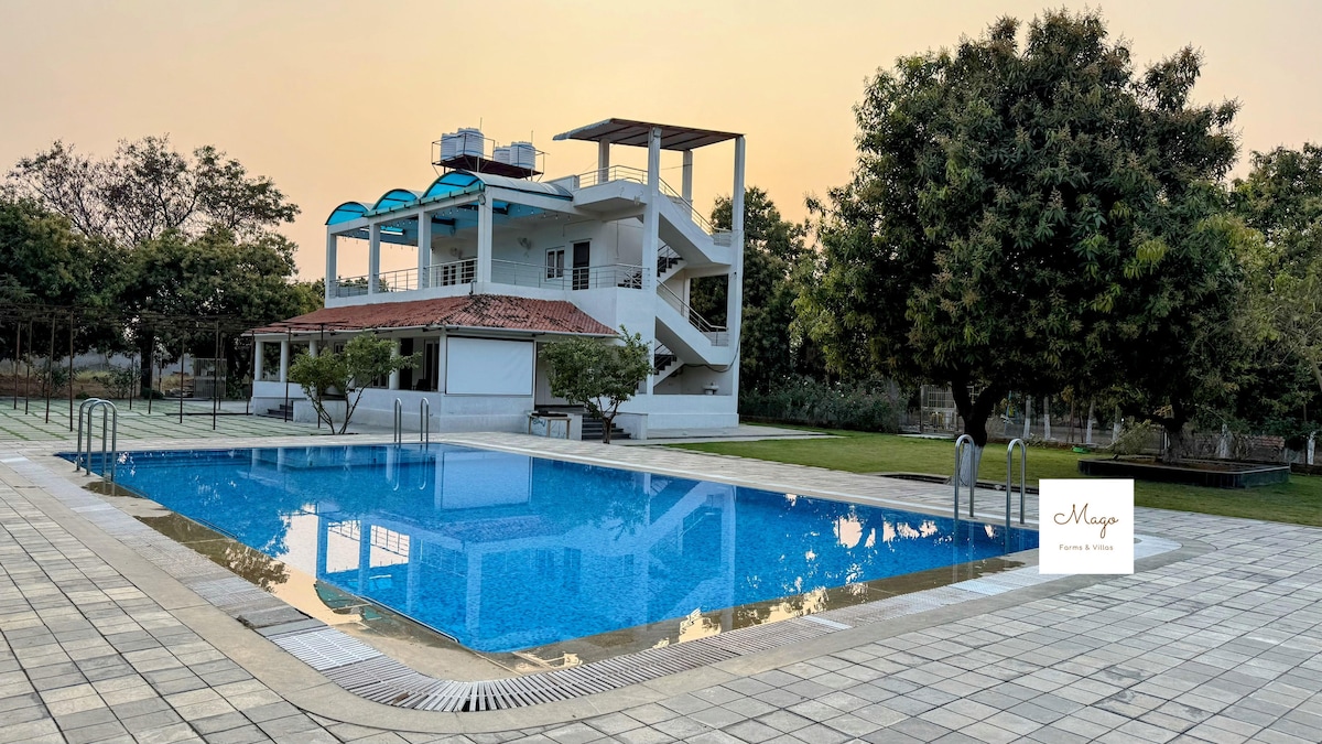 Imagine the gentle sound of birds in the garden, the sparkle of the pool catching the afternoon sun, and a breeze brushing past your skin as you sip your morning tea on the patio. Nestled just a kilometre off the highway and set amidst a half-acre of green, open space, this charming 3BHK private far retreat offers the perfect blend of comfort, privacy, and simplicity—with a private pool, kitchen garden, and ample space for everyone to unwind.
