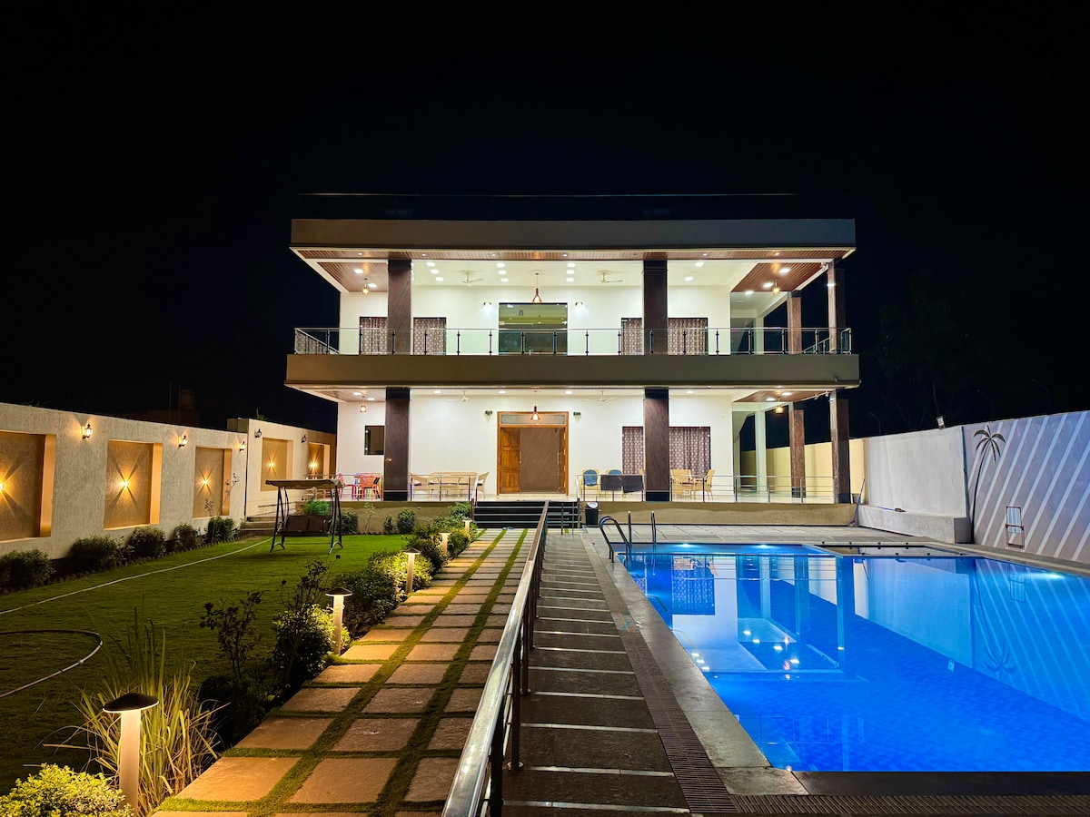Urban Nirvana: Serene Farmhouse with Private Pool Escape to Urban Nirvana, a modern farmhouse surrounded by lush greenery. Enjoy a private pool, stylish interiors, and spacious outdoor areas perfect for relaxation. This secluded retreat offers high-speed Wi-Fi, a fully equipped kitchen, and is just a short drive from local attractions. Ideal for families, couples, or groups seeking tranquility. Book your stay at Urban Nirvana for a luxurious and peaceful getaway.