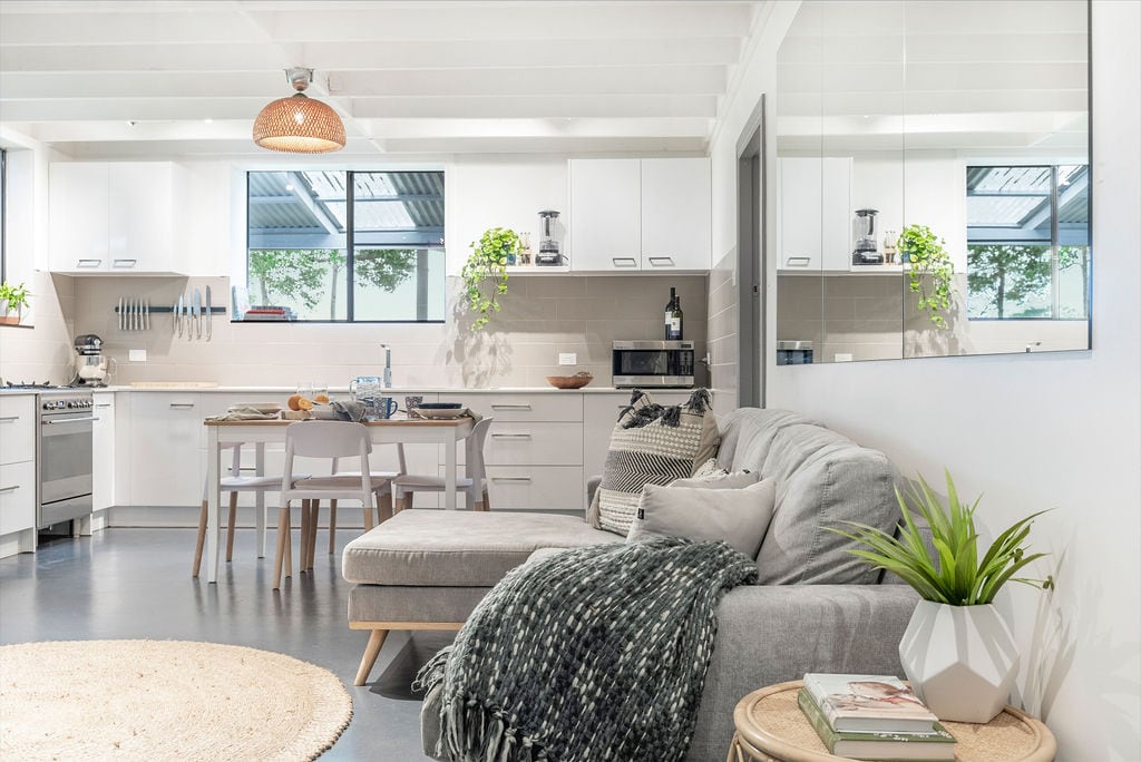 Located on an idyllic 120-acre farm with uninterrupted views of rolling green hills. It's the perfect base to explore the Byron Bay hinterland - Bangalow is just 10-minutes drive away, Byron Bay a further 10-minutes on, and all the most popular destinations are within 25-minutes. The Cottage is a renovated 1890s coach house that is beautifully appointed, combining rustic charm with quality finishes. Be sure to check out the new restaurant Frida's Field that is opening on the same property.