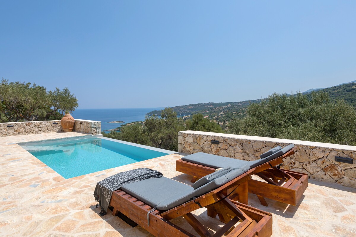 The traditional stone villas, Orfos Villas, have four villas that accommodate 4-6 persons. Villa JOGIA offers a private pool and is fully equipped to meet your every need. The villa has been carefully decorated with a rich earnestness for detail using handmade and traditional furnishings to give a unique style and high standard of comfort. Located in Agios Nikolaοs in Volimes one of the most idyllic locations of the island and offers magical views over the crystal clear waters of the Ionian Sea.