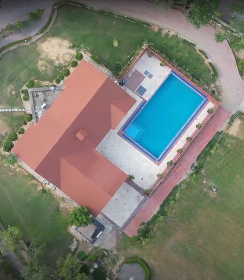 • <b> Luxury Aravalli Villa </b>: 15,000 sq ft, 3BHK, pet-friendly, private swimming pool & Jacuzzi • <b> Summer Edit</b> Exclusive Gifts for our Guests in April, May & June • <b> Complimentary</b>: Welcome Basket • <b> Gourmet Kitchen</b>: Fully equipped with Oven, and chef (on call). Zomato/Swiggy delivery available. • <b> Entertainment</b>: Jacuzzi, 4,000 sq ft lawn, pool table, indoor/outdoor games, 75" Smart TV. • <b> Full-Service</b>: 24/7 caretaker, chef available, parking for 5 cars.