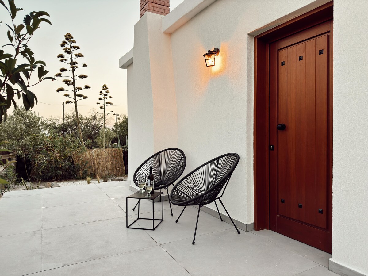 Situated near the entrance of the traditional settlement of Nikiti, this newly renovated, cozy studio is ideal for couples, friends and business travellers who want to explore Sithonia's peninsula. Decorated and furnished in a modern and elegant style, combining comfort and quality, it creates a homey atmosphere that, together with the distinct setting of the courtyard with the olive trees, is a nice retreat and a starting point for guests to enjoy their summer holidays!