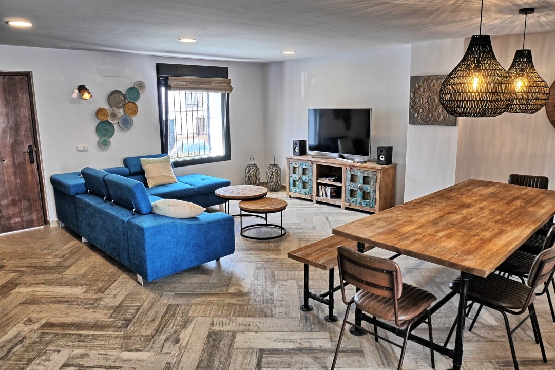 Newly renovated house situated on the Balcon de Europa! Fantastic first location for those who wish to stay in the center of all that Nerja has to offer. The house is located between two beaches within walking distance of 5 minutes. You live in the center of Nerja, in a side street about five minutes away from restaurants and bars. Here you have it all! The property has a total of 90 m2 which is located on the first floor, with terrace of 75 m2 overlooking the sea
