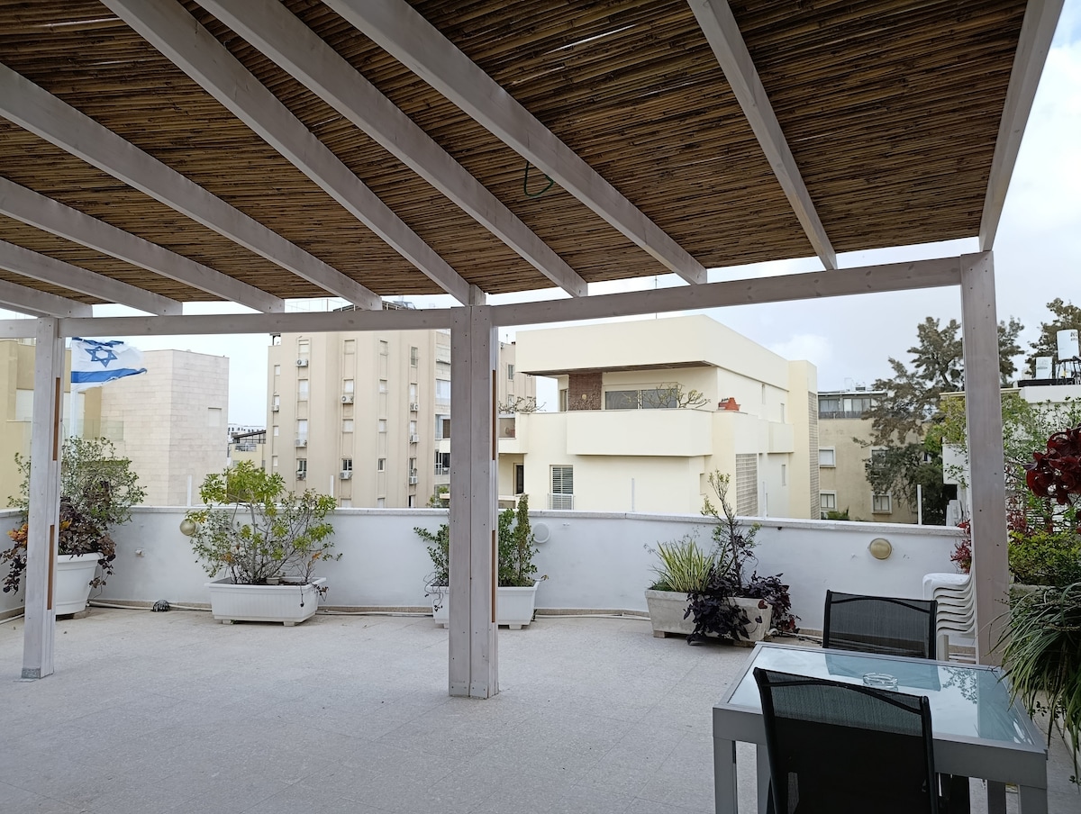 Relax and unwind in a quiet and stylish suite in Herzliya Pituah in a vegetable-washed villa. Perfect for solo travelers or a couple. The suite is in the 1st floor (above kc) in a private villa (accessed by design stairs but steep, not suitable for people with disabilities.) The suite is air-conditioned and fully furnished, includes a living room, a work area, a pampering bedroom a fully equipped kitchenette and a modern bathroom. Minutes away from the enchanting beach and promenade of the Herzliya. Minutes walk from supermarket, shops center, laundry, synagogue, cafes and restaurants, Medical Center. Accessibility for buses to Tel Aviv, to Herzliya, train to Ben Gurion Airport.