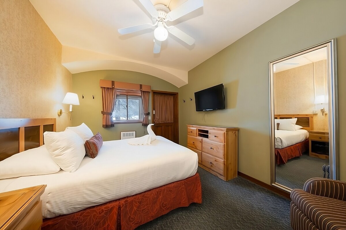 This quaint studio at Mother Nature's Inn historically functioned as an innkeeper's residence. In more recent years it has been a friends & family suite, utilized as the perfect staging area for skiing, mountain biking & playing at the lake. Now all guests can experience this hidden gem. The kitchen, sofa, dining table, & bunk beds provide guests with more comforts than a standard hotel room. Adventure lovers are delighted by the authentic art & mountain décor adorning the studio. Dog friendly.