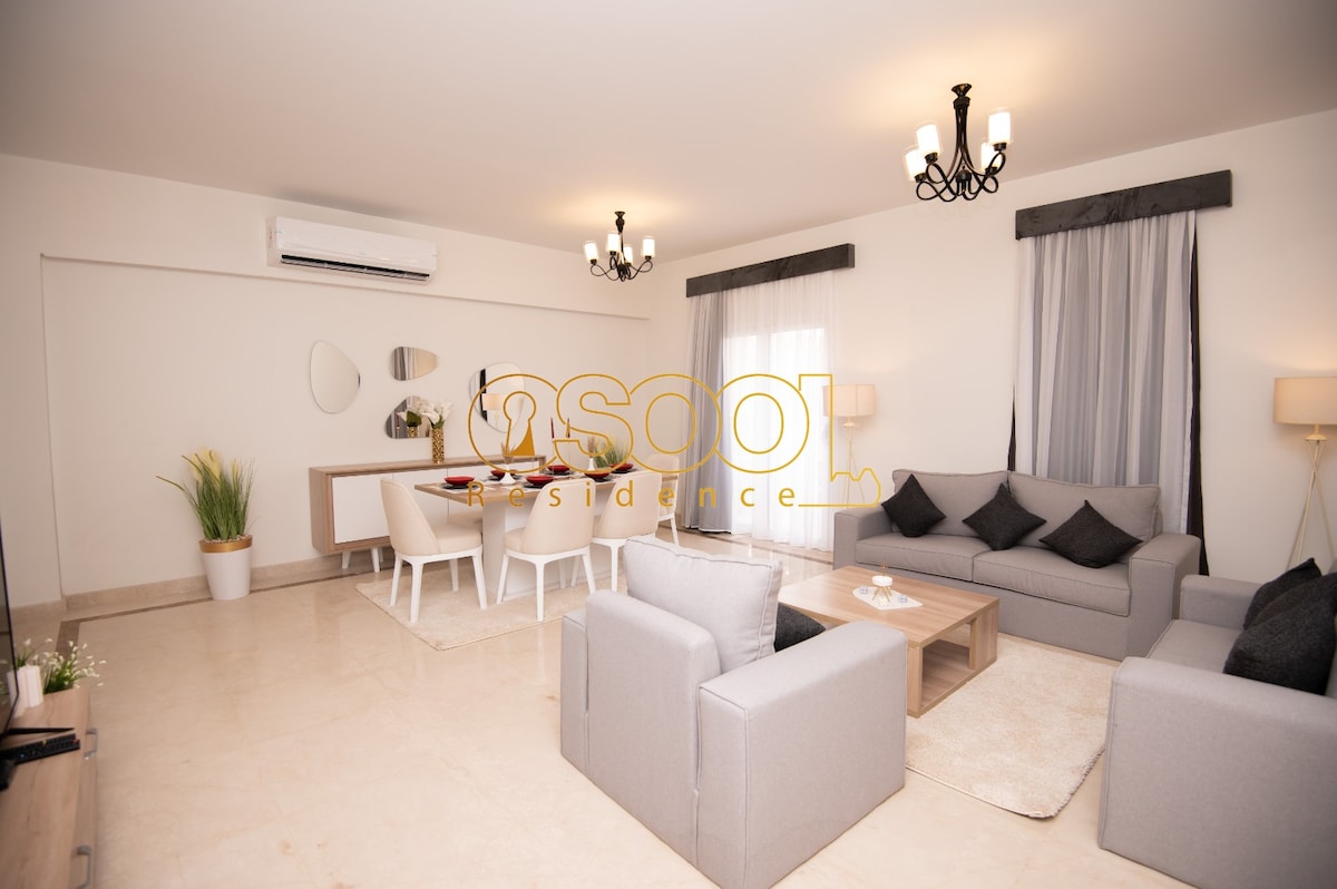"Stunning design 🏡 , breathtaking views✨, and endless entertainment await you at this amazing apartment Special off up to 40% on weekly’s ✅ Enjoy the walk and amazing views across the lakes , Pools , Garden and clubhouse in a fully secured compound Come tour the most ancient Pyramids and other archaeological sites and then relax in one of the most modern luxury apartment complexes Egypt has to offer. Welcome to our home where you will be treated like family.♥️