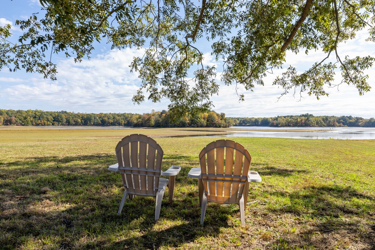 Cute & cozy (tiny) waterfront cottage nestled in a pine forest. Situated on an almost 3 acre point on the Diascund Reservoir this is THE perfect spot to get away from it all & still be in the middle of everything! Options abound - fishing from the dock, bird watching, canoeing, roasting marshmallows around the fire pit, swinging in the hammocks, napping on the screened in porch, grilling on the patio, reading in the loft, playing games (inside & out), or just chill & feel the vibe.