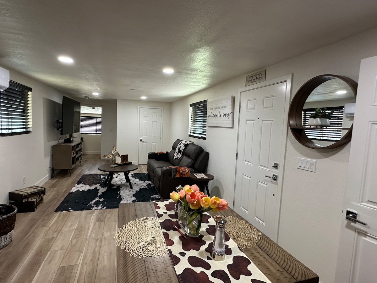 Welcome to our casita! About 4 miles from I-40 and right by route 66. Great rest spot for travelers. We are in a calm and quiet neighborhood. The casita is located in the back of our home and has a private gate and entrance. Prompt responses from inquiries and our place is always ready for same day bookings. Wifi, refrigerator with freezer, washer and dryer, and comfortable queen mattress.
