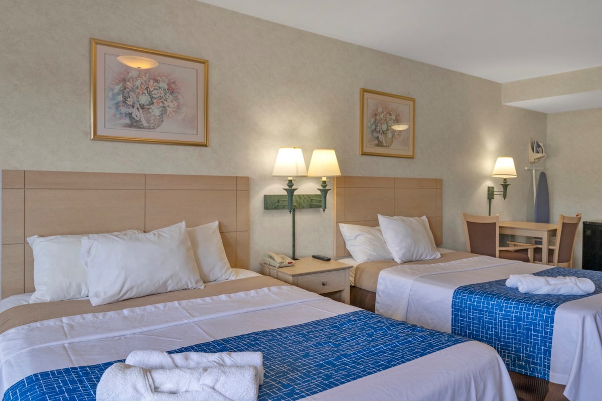 Perfect for families or groups, this room features two queen beds and modern essentials for a pleasant stay near Niagara’s top attractions. Visit nearby restaurants or the Fashion Outlets, only a short drive away. Ample free parking makes exploring the area easy and stress-free.