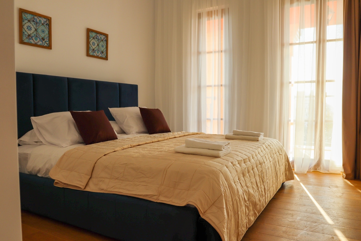 Possibly the most exquisite short-term accommodation in the heart of Nicosia. Our 250 sq.m ultra-luxury three-bedroom apartment is situated on the third floor, featuring a grand living and dining area with floor heating. The indoor pool, sauna, and gym are situated on the first floor. Within your covered private parking, you also have access to our eco-friendly EV charging station, for tenants with electric vehicles. We also offer 24/7 security.