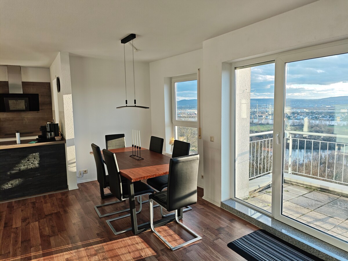 Hello dear guests! Our attic apartment is spread over two floors with a total of 53 m2 and sleeps 4 with two bedrooms. The apartment has been lovingly renovated and offers everything you need (Wi-Fi, washing machine and dishwasher, dryer, microwave, TV, ...). The accommodation impresses not only with its quiet location, but also by the unique view of the Rhine. A bus stop to get to the city center is within walking distance.